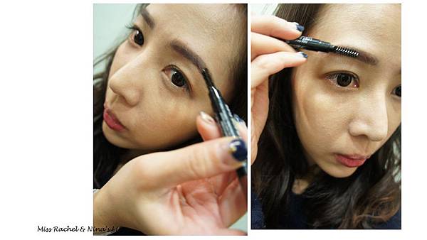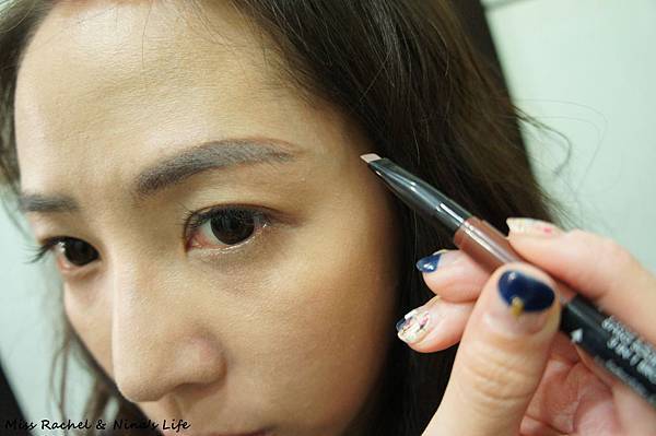 先將輪廓畫出來,因為這支眉筆的筆頭是扁平的三角斜型,所以在描繪輪廓的時候非常好操控!