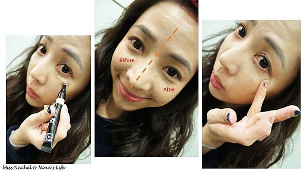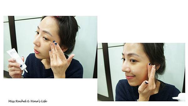 像我本身黑眼圈就是很重的人~~面積比較大,所以我就直接用指腹輕輕按壓,