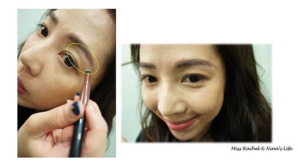 再使用另一頭的圓弧刷頭把痕跡稍微暈順一點,讓眉毛的線條可以更自然!!