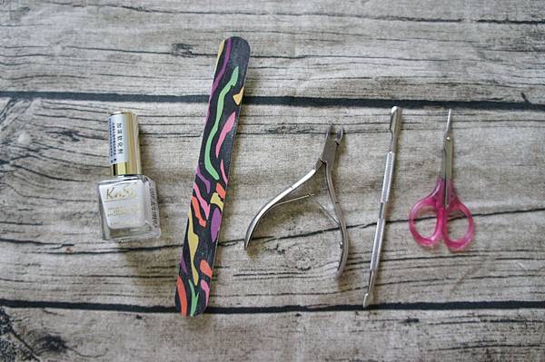 現在市面上有很多這種甘皮軟化劑,塗在指緣周圍再用金屬推棒將甲面範圍推大,看看推出好多死皮唷~~~最後再用甘皮剪稍微修剪一下,讓指甲看起來更乾淨,視覺也更好!!