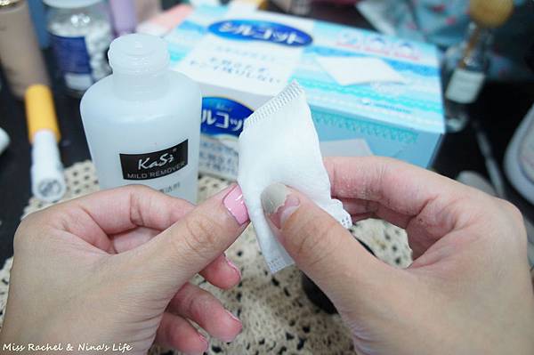 建議要使用不會掉棉絮的化妝棉才不會黏的到處都是小毛絮!!