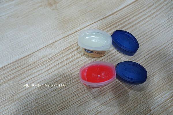 粉色是玫瑰口味,而且有潤色效果,相較於妮維雅或凡士林款顏色會更紅潤一點,