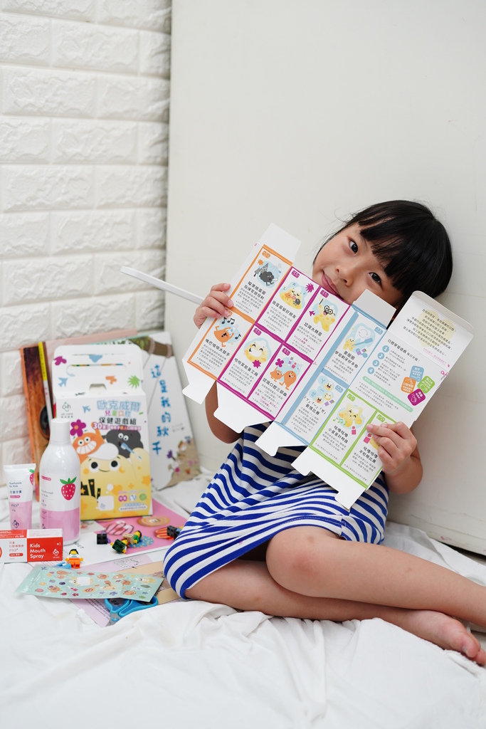 oh care歐克威爾 兒童口腔互動遊戲組 外盒非常可愛喔,一層一層打開都有小玄機,小朋友都可以自己動手剪剪看