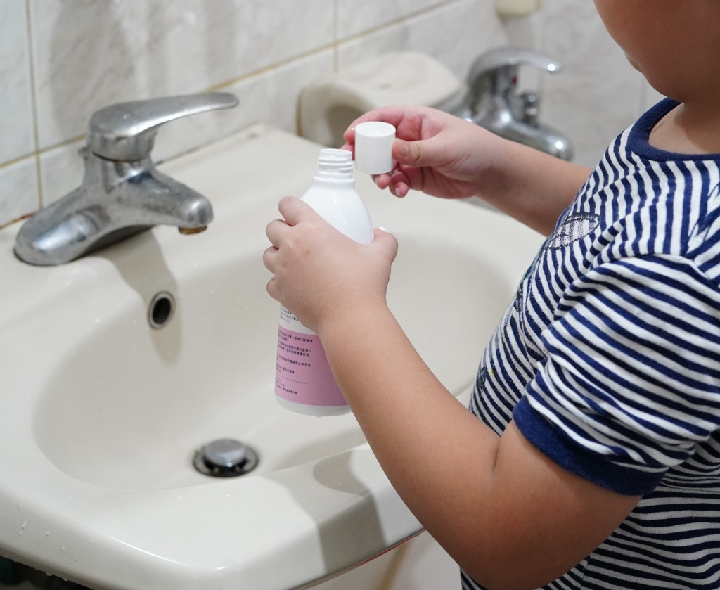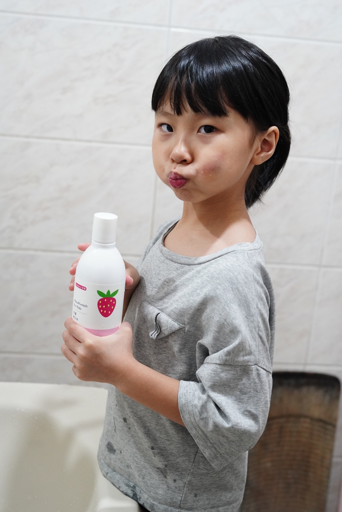 第二部則是搭配兒童漱口水,刷牙大概只能清除20-30%的細菌,搭配漱口水來加強全方位的潔牙,